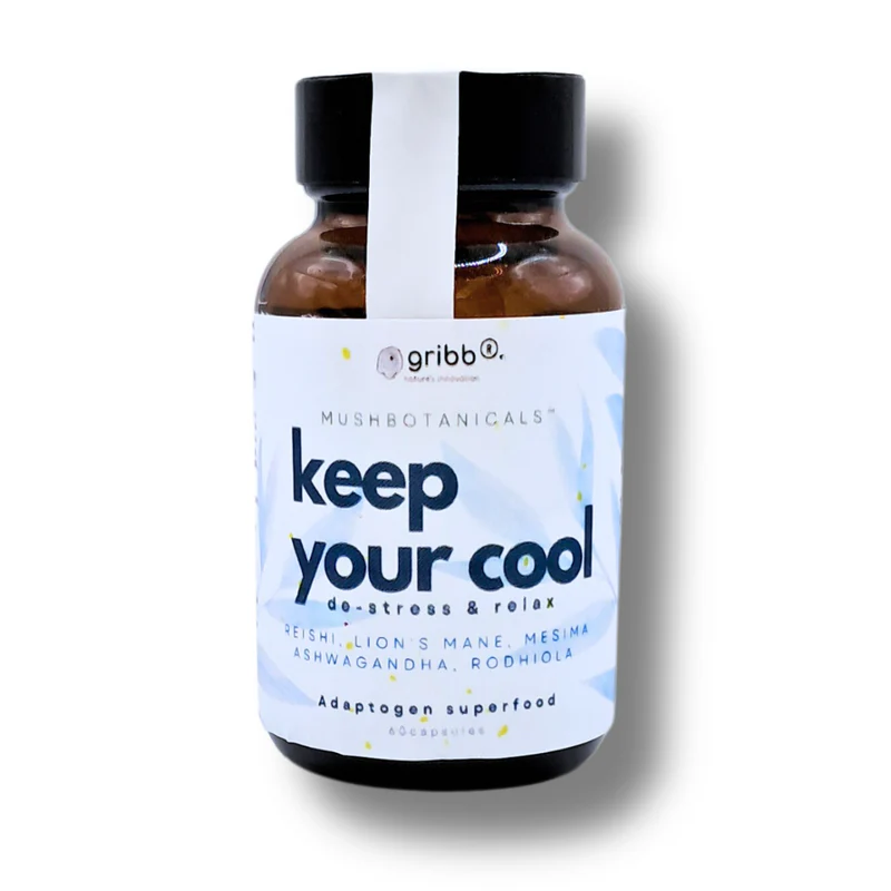 KEEP YOUR COOL est une combinaison sur mesure de nos champignons médicinaux certifiés biologiques cultivés dans notre ferme urbaine en Algarve et de plantes certifiées biologiques formulées pour favoriser un sentiment naturel de calme et de relaxation, améliorer l’humeur et favoriser une bonne nuit de sommeil.